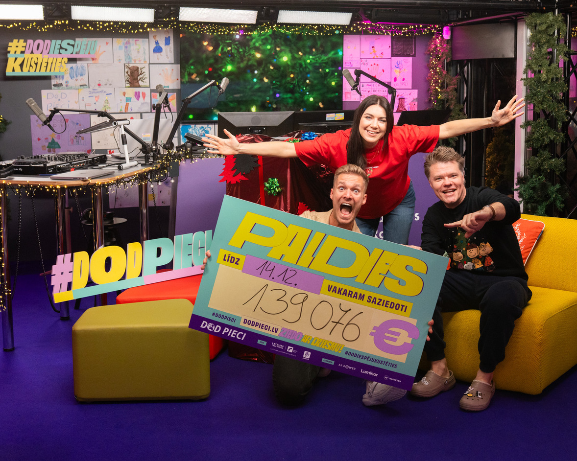 Latvijas Sabiedriskā medija labdarības maratonā “Dod pieci” aizrit otrā diennakts, un līdz svētdienas, 14. decembra, plkst. 18.00 kopā saziedoti 139 076 eiro. Visi labdarības maratonā iegūtie līdzekļi nonāks Ziedot.lv, lai palīdzētu apmaksāt procedūras, kas būtiski uzlabo funkcionālo stāvokli bērniem un jauniešiem ar neiroloģiskiem kustību traucējumiem.