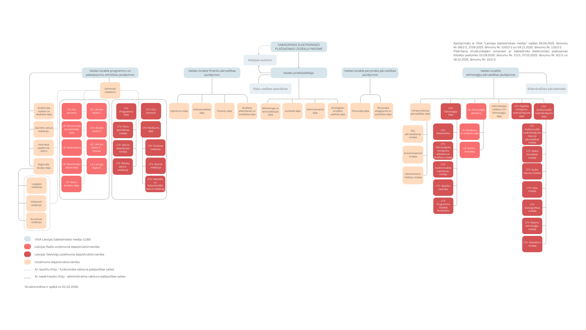 Latvijas Sabiedriskā medija organizatoriskā struktūra (struktūrshēma stājas spēkā no 01.01.2026.)